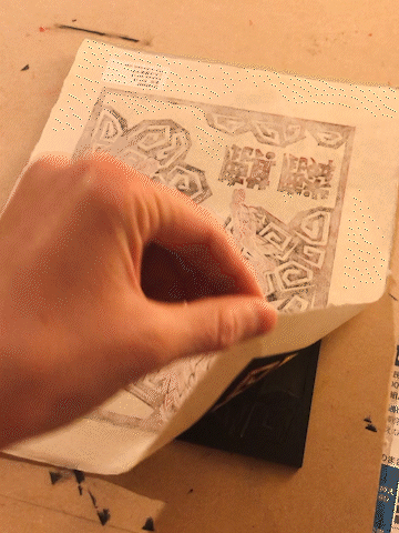 Printing block carved and ready for printing the 2nd layer (red).